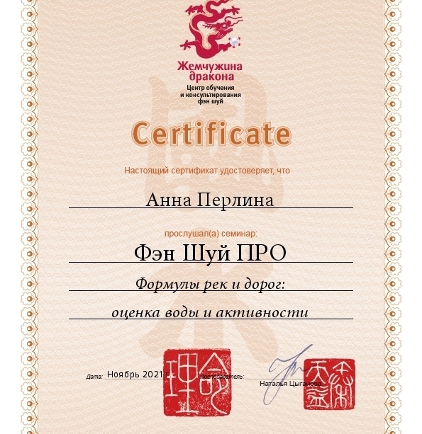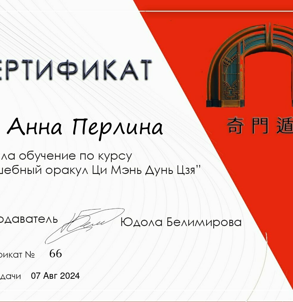 Приветствую Вас! Меня зовут Анна Перлина. Я изучаю и практикую классический фен шуй. Анализирую карты по дате рождения . Провожу консультации по жилой и коммерческой недвижимости . Рассматриваю карты рождения с помощью Ци Мень Дунь Цзя . Отвечаю на вопросы по Оракулу ,И Цзин . Составляю личные календари благоприятных дат . Рассчитываю прогулки для удачи в разных сферах .